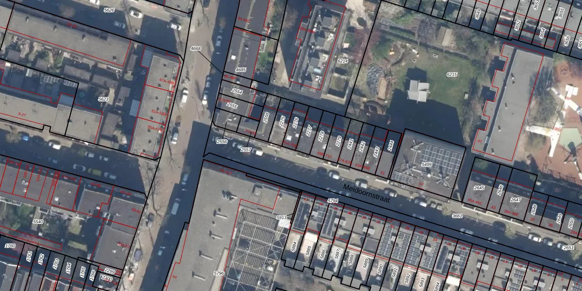 Meidoornstraat 75-B is gelegen op kadastraal perceel RTD07W2276. Deze kadastrale aanduiding is uniek en wordt gebruikt door het Kadaster om eigendomsrechten en andere zakelijke rechten vast te leggen. Het perceel maakt onderdeel uit van de kadastrale gemeente Rotterdam.