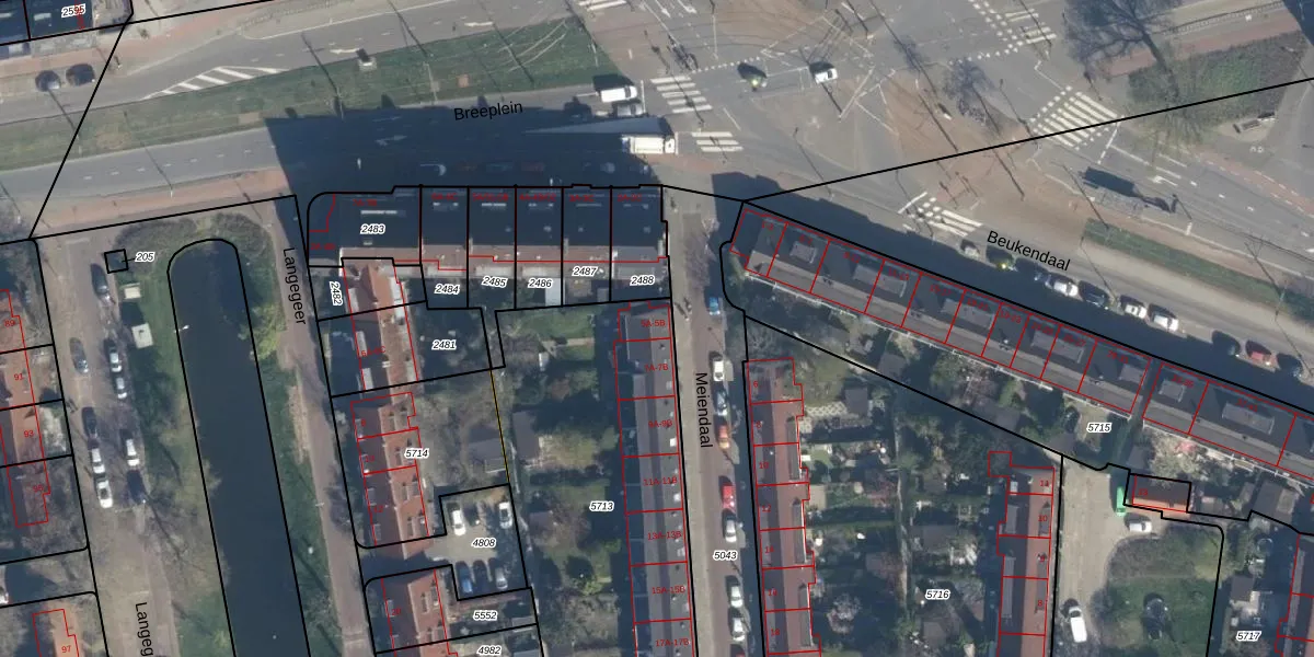 Het adres ligt op het perceel RTD05-V-5713, dat zich in de kadastrale gemeente Rotterdam bevindt. De gemiddelde perceeloppervlakte in de kadastrale gemeente Rotterdam is 1401,79 m². Dit perceel is met zijn 1631 m² dus groter dan gemiddeld. Het kleinste perceel in de kadastrale gemeente is 0 m² groot. De grootste perceeloppervlakte is 36,8 ha. Op het perceel zijn 14 adressen aanwezig. De huidige grenzen van het perceel zijn digitaal in de Basisregistratie Kadaster (BRK) geregistreerd op 25-04-2019.