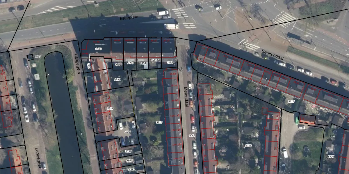 Het adres ligt op het perceel RTD05-V-5713, dat zich in de kadastrale gemeente Rotterdam bevindt. De gemiddelde perceeloppervlakte in de kadastrale gemeente Rotterdam is 1401,79 m². Dit perceel is met zijn 1631 m² dus groter dan gemiddeld. Het kleinste perceel in de kadastrale gemeente is 0 m² groot. De grootste perceeloppervlakte is 36,8 ha. Op het perceel liggen in totaal 14 adressen. De huidige grenzen van het perceel zijn digitaal in de Basisregistratie Kadaster (BRK) geregistreerd op 25-04-2019.