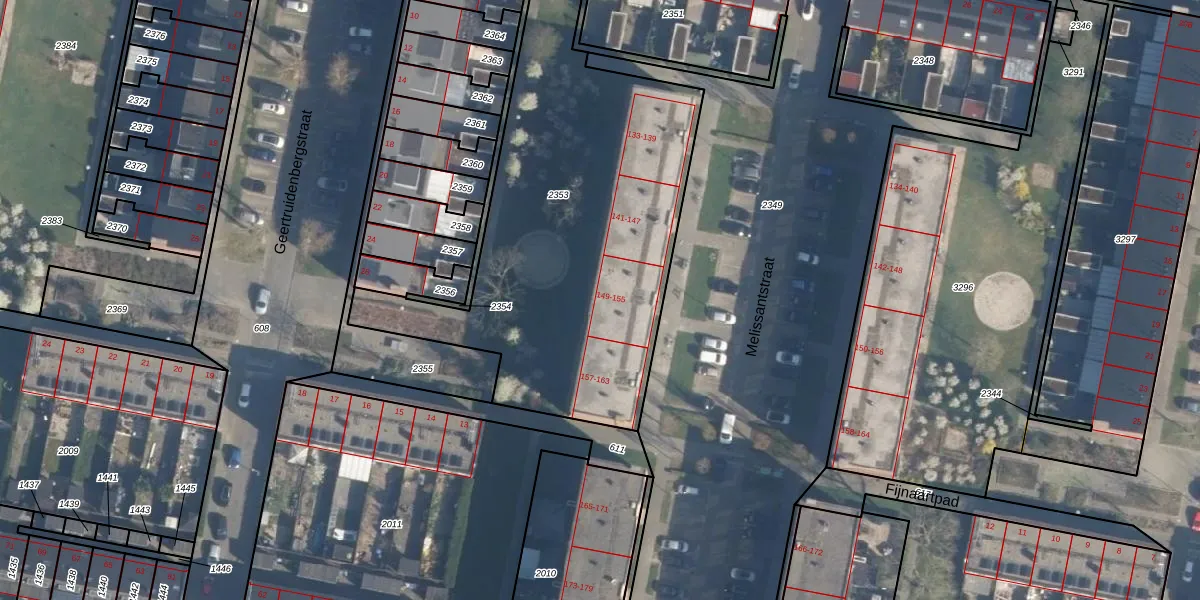 Melissantstraat 149 is gelegen op kadastraal perceel CLS00L2353. Deze kadastrale aanduiding is uniek en wordt gebruikt door het Kadaster om eigendomsrechten en andere zakelijke rechten vast te leggen. Het perceel maakt onderdeel uit van de kadastrale gemeente Charlois.