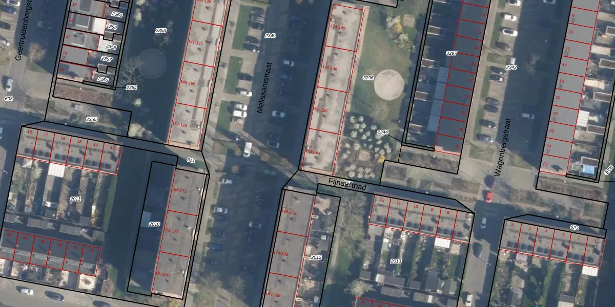 Het perceel waarop Melissantstraat 160 staat heeft een oppervlakte van 2001 m². Dit is een zeer groot perceel. De perceeloppervlakte wordt geregistreerd door het Kadaster. Gedetailleerde informatie over de maten van dit perceel kunt u vinden in het rapport Kadastrale kaart met maatvoering van Melissantstraat 160.