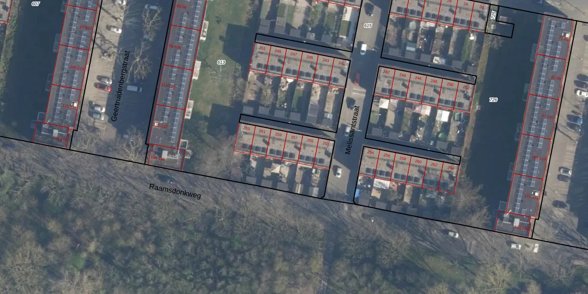 Melissantstraat 257 is gelegen op kadastraal perceel CLS00L613. Deze kadastrale aanduiding is uniek en wordt gebruikt door het Kadaster om eigendomsrechten en andere zakelijke rechten vast te leggen. Het perceel maakt onderdeel uit van de kadastrale gemeente Charlois.
