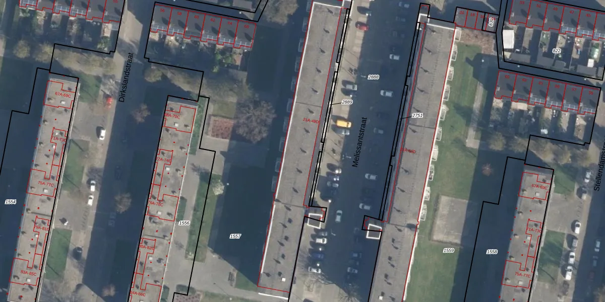 Melissantstraat 35-D is gelegen op kadastraal perceel CLS00L1557. Deze kadastrale aanduiding is uniek en wordt gebruikt door het Kadaster om eigendomsrechten en andere zakelijke rechten vast te leggen. Het perceel maakt onderdeel uit van de kadastrale gemeente Charlois.