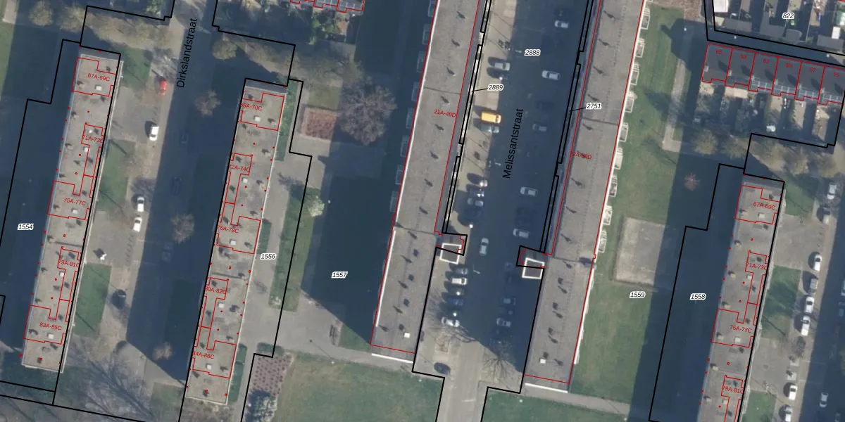 Melissantstraat 39-A is gelegen op kadastraal perceel CLS00L1557. Deze kadastrale aanduiding is uniek en wordt gebruikt door het Kadaster om eigendomsrechten en andere zakelijke rechten vast te leggen. Het perceel maakt onderdeel uit van de kadastrale gemeente Charlois.