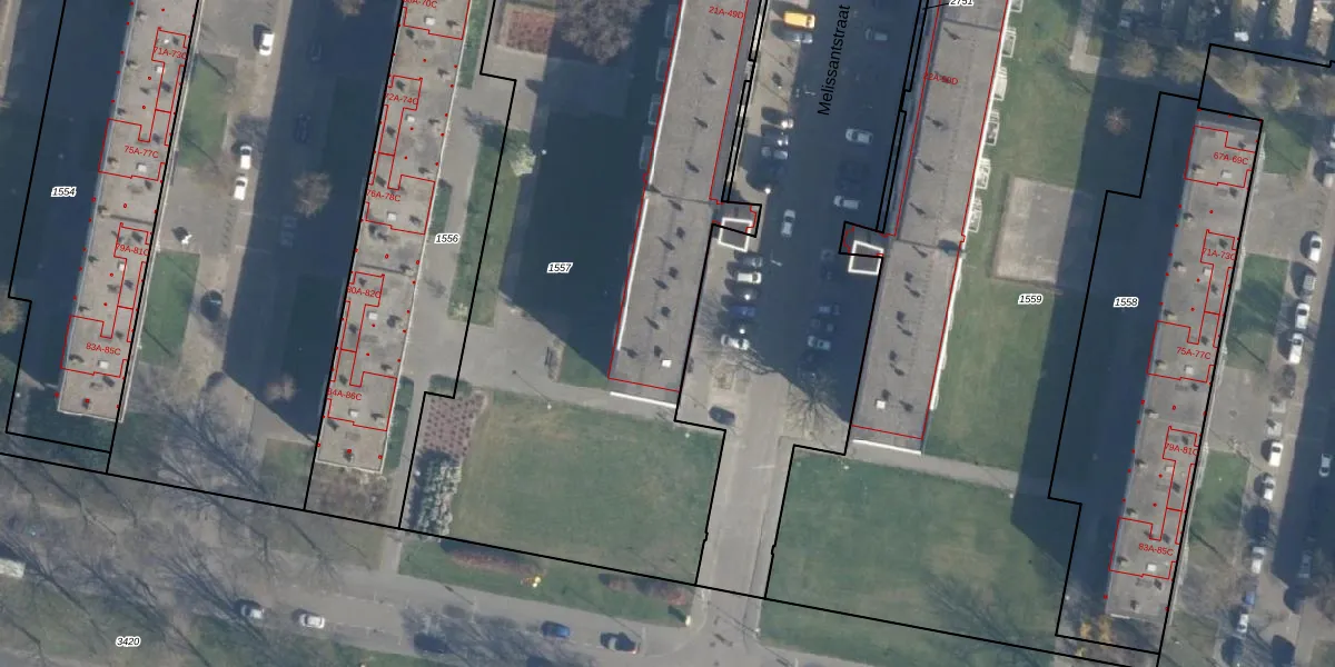Melissantstraat 47-B is gelegen op kadastraal perceel CLS00L1557. Deze kadastrale aanduiding is uniek en wordt gebruikt door het Kadaster om eigendomsrechten en andere zakelijke rechten vast te leggen. Het perceel maakt onderdeel uit van de kadastrale gemeente Charlois.