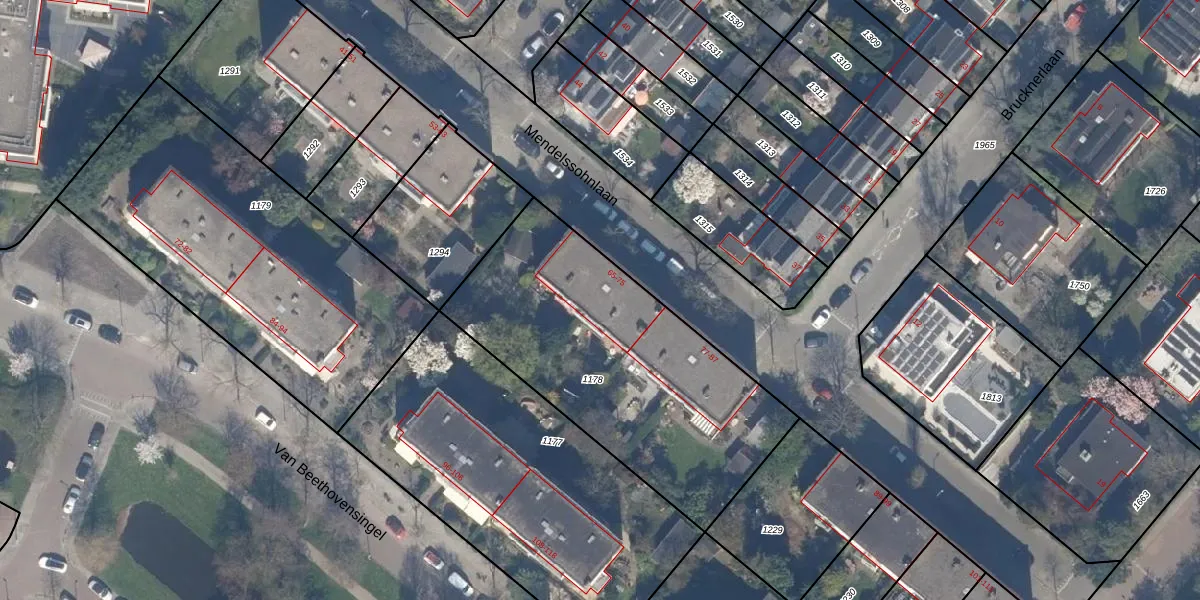 Het perceel waarop Mendelssohnlaan 67 staat heeft een oppervlakte van 1413 m². Dit is een zeer groot perceel. De perceeloppervlakte wordt geregistreerd door het Kadaster. Gedetailleerde informatie over de maten van dit perceel kunt u vinden in het rapport Kadastrale kaart met maatvoering van Mendelssohnlaan 67.