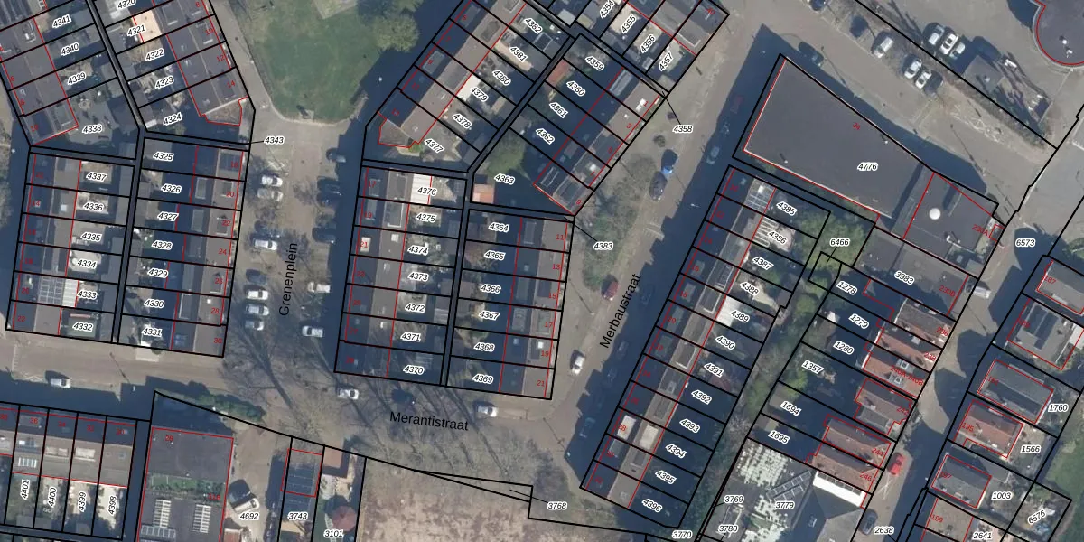 Het perceel waarop Merbaustraat 13 staat heeft een oppervlakte van 105 m². Dit is een middelgroot perceel. De perceeloppervlakte wordt geregistreerd door het Kadaster. Gedetailleerde informatie over de maten van dit perceel kunt u vinden in het rapport Kadastrale kaart met maatvoering van Merbaustraat 13.