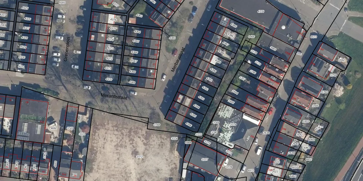 Gebruik de zoekbalk of klik op een perceel voor informatie over de adressen binnen dit perceel.