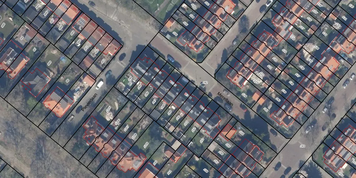 Het perceel waarop Merellaan 17 staat heeft een oppervlakte van 165 m². Dit is een middelgroot perceel. De perceeloppervlakte wordt geregistreerd door het Kadaster. Gedetailleerde informatie over de maten van dit perceel kunt u vinden in het rapport Kadastrale kaart met maatvoering van Merellaan 17.