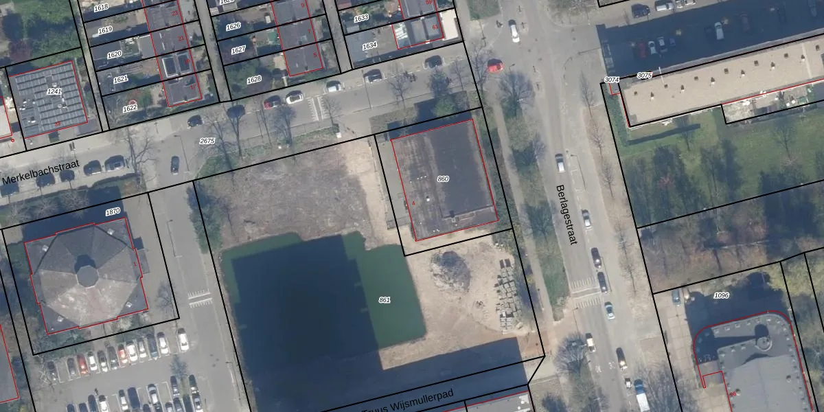 Gebruik de zoekbalk of klik op een perceel voor informatie over de adressen binnen dit perceel.