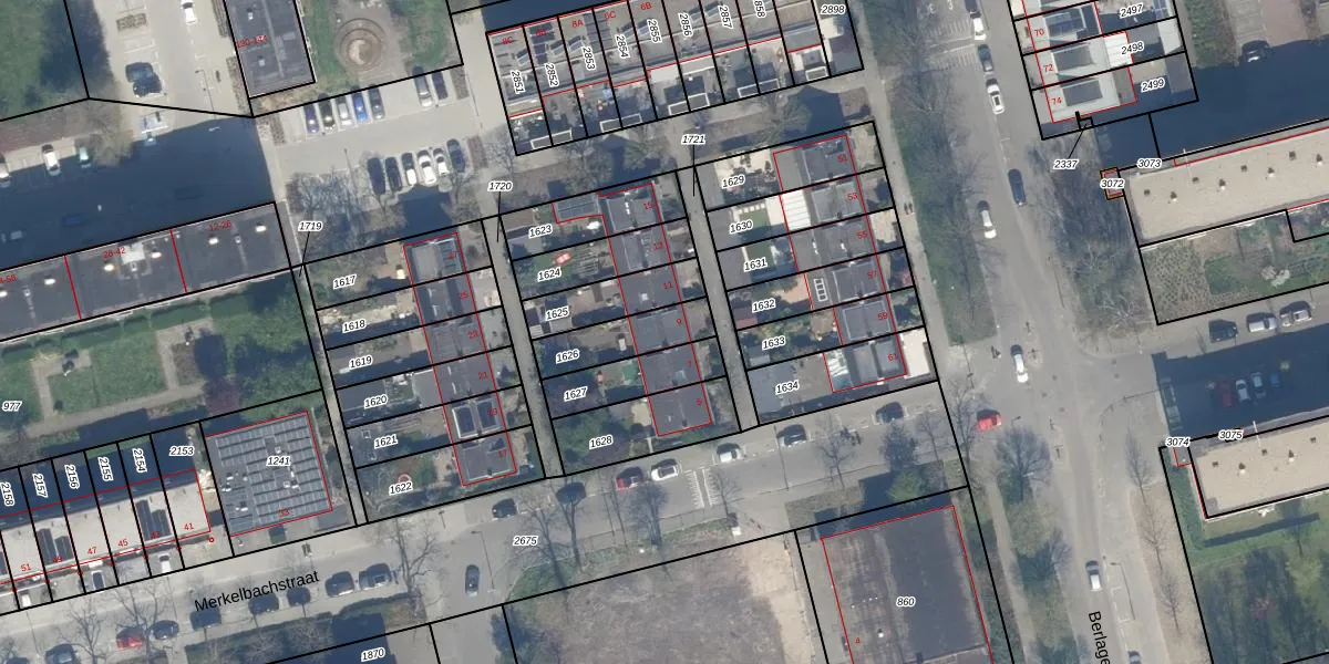Gebruik de zoekbalk of klik op een perceel voor informatie over de adressen binnen dit perceel.