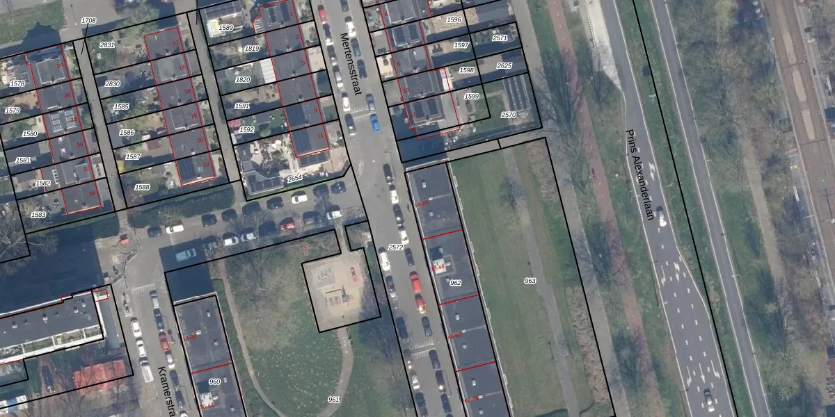 Het perceel waarop Mertensstraat 22 staat heeft een oppervlakte van 673 m². Dit is een groot perceel. De perceeloppervlakte wordt geregistreerd door het Kadaster. Gedetailleerde informatie over de maten van dit perceel kunt u vinden in het rapport Kadastrale kaart met maatvoering van Mertensstraat 22.