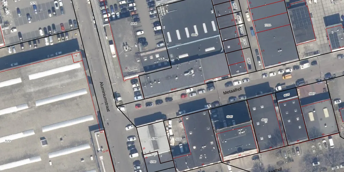 Het perceel waarop Metaalhof 25 staat heeft een oppervlakte van 1900 m². Dit is een zeer groot perceel. De perceeloppervlakte wordt geregistreerd door het Kadaster. Gedetailleerde informatie over de maten van dit perceel kunt u vinden in het rapport Kadastrale kaart met maatvoering van Metaalhof 25.