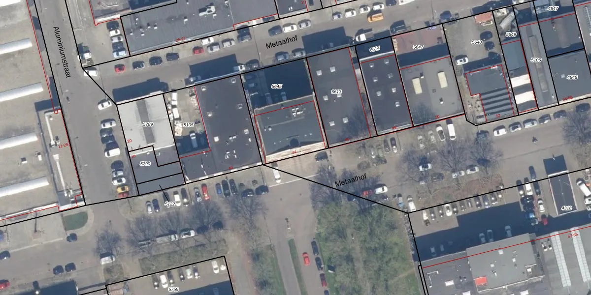 Het perceel waarop Metaalhof 44 staat heeft een oppervlakte van 725 m². Dit is een groot perceel. De perceeloppervlakte wordt geregistreerd door het Kadaster. Gedetailleerde informatie over de maten van dit perceel kunt u vinden in het rapport Kadastrale kaart met maatvoering van Metaalhof 44.