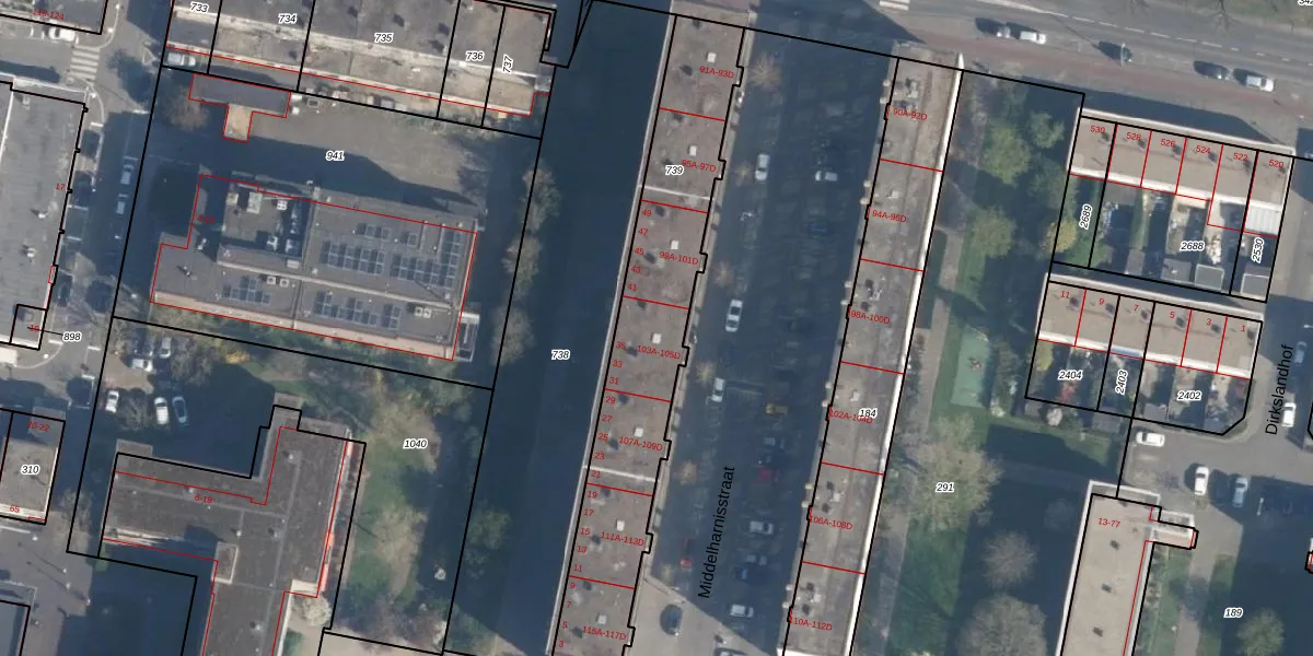 Middelharnisstraat 103-B is gelegen op kadastraal perceel CLS00L739. Deze kadastrale aanduiding is uniek en wordt gebruikt door het Kadaster om eigendomsrechten en andere zakelijke rechten vast te leggen. Het perceel maakt onderdeel uit van de kadastrale gemeente Charlois.