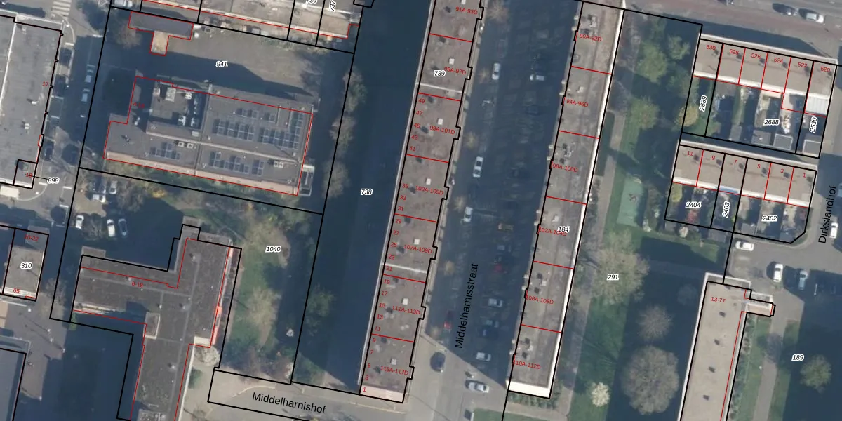 Middelharnisstraat 105-C is gelegen op kadastraal perceel CLS00L739. Deze kadastrale aanduiding is uniek en wordt gebruikt door het Kadaster om eigendomsrechten en andere zakelijke rechten vast te leggen. Het perceel maakt onderdeel uit van de kadastrale gemeente Charlois.