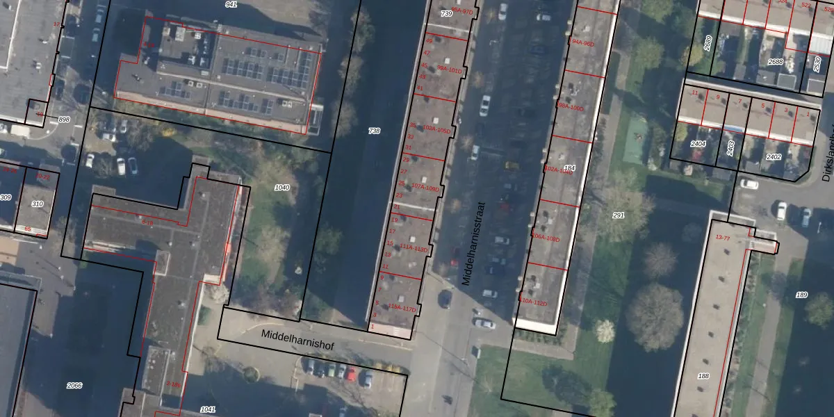 Middelharnisstraat 109-C is gelegen op kadastraal perceel CLS00L739. Deze kadastrale aanduiding is uniek en wordt gebruikt door het Kadaster om eigendomsrechten en andere zakelijke rechten vast te leggen. Het perceel maakt onderdeel uit van de kadastrale gemeente Charlois.