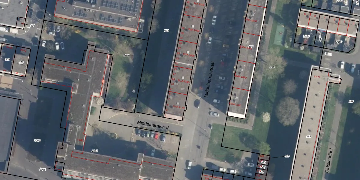 Middelharnisstraat 113-A is gelegen op kadastraal perceel CLS00L739. Deze kadastrale aanduiding is uniek en wordt gebruikt door het Kadaster om eigendomsrechten en andere zakelijke rechten vast te leggen. Het perceel maakt onderdeel uit van de kadastrale gemeente Charlois.