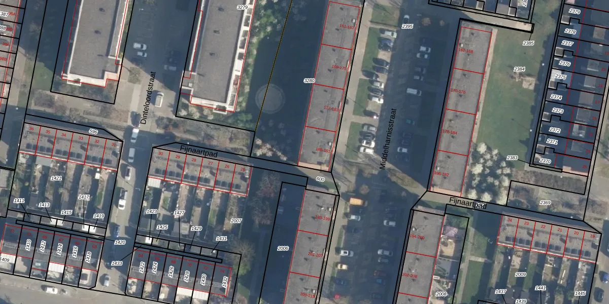 Middelharnisstraat 187 is gelegen op kadastraal perceel CLS00L3280. Deze kadastrale aanduiding is uniek en wordt gebruikt door het Kadaster om eigendomsrechten en andere zakelijke rechten vast te leggen. Het perceel maakt onderdeel uit van de kadastrale gemeente Charlois.