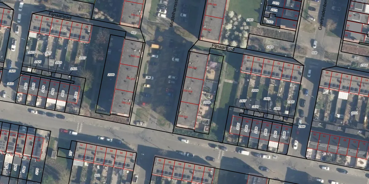 Middelharnisstraat 202 is gelegen op kadastraal perceel CLS00L2008. Deze kadastrale aanduiding is uniek en wordt gebruikt door het Kadaster om eigendomsrechten en andere zakelijke rechten vast te leggen. Het perceel maakt onderdeel uit van de kadastrale gemeente Charlois.
