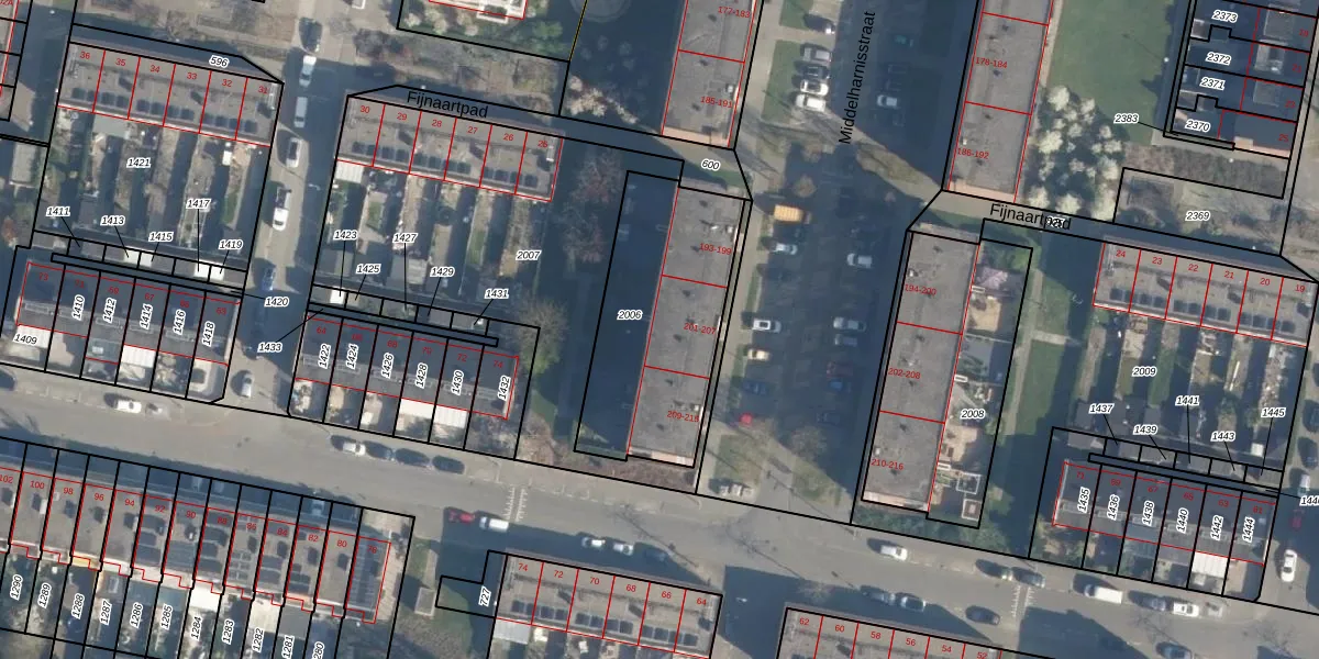 Middelharnisstraat 203 is gelegen op kadastraal perceel CLS00L2006. Deze kadastrale aanduiding is uniek en wordt gebruikt door het Kadaster om eigendomsrechten en andere zakelijke rechten vast te leggen. Het perceel maakt onderdeel uit van de kadastrale gemeente Charlois.