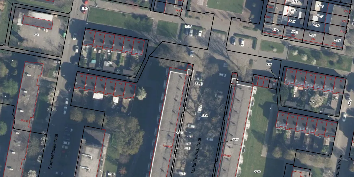 Middelharnisstraat 23-D is gelegen op kadastraal perceel CLS00L1684. Deze kadastrale aanduiding is uniek en wordt gebruikt door het Kadaster om eigendomsrechten en andere zakelijke rechten vast te leggen. Het perceel maakt onderdeel uit van de kadastrale gemeente Charlois.