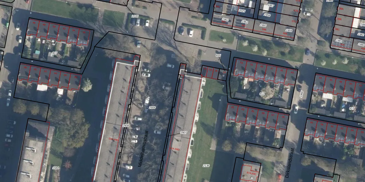 Het perceel waarop Middelharnisstraat 24-D staat heeft een oppervlakte van 4457 m². Dit is een zeer groot perceel. De perceeloppervlakte wordt geregistreerd door het Kadaster. Gedetailleerde informatie over de maten van dit perceel kunt u vinden in het rapport Kadastrale kaart met maatvoering van Middelharnisstraat 24-D.