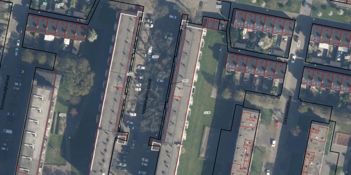 Middelharnisstraat 32-B is gelegen op kadastraal perceel CLS00L2136. Deze kadastrale aanduiding is uniek en wordt gebruikt door het Kadaster om eigendomsrechten en andere zakelijke rechten vast te leggen. Het perceel maakt onderdeel uit van de kadastrale gemeente Charlois.
