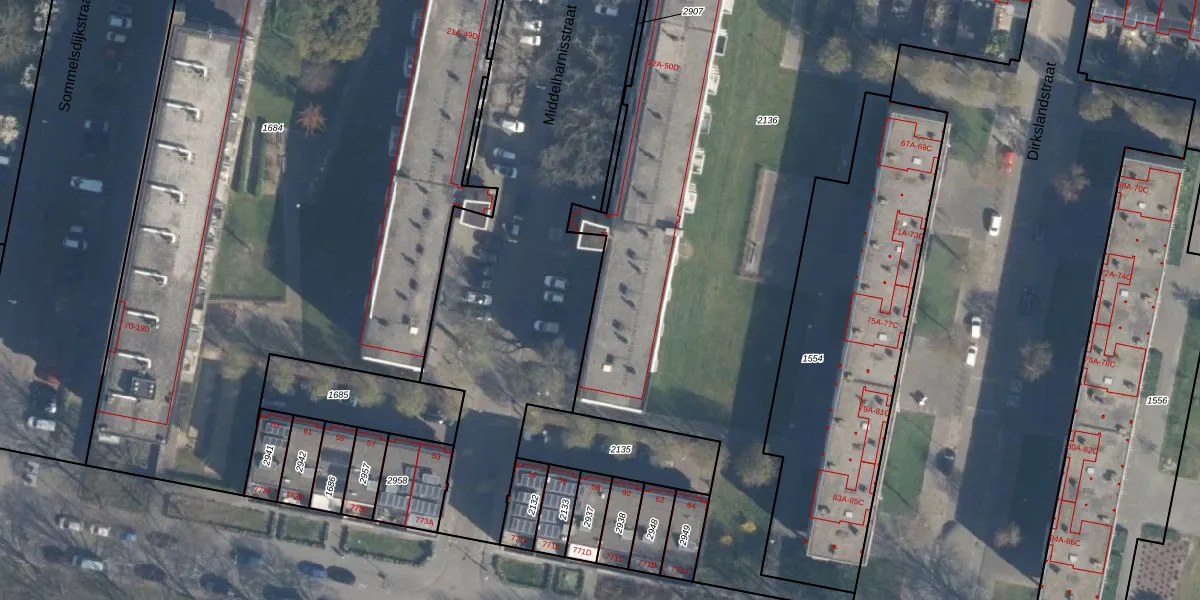 Middelharnisstraat 46-C is gelegen op kadastraal perceel CLS00L2136. Deze kadastrale aanduiding is uniek en wordt gebruikt door het Kadaster om eigendomsrechten en andere zakelijke rechten vast te leggen. Het perceel maakt onderdeel uit van de kadastrale gemeente Charlois.