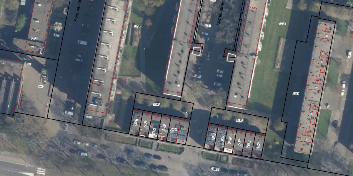 Middelharnisstraat 49-D is gelegen op kadastraal perceel CLS00L1684. Deze kadastrale aanduiding is uniek en wordt gebruikt door het Kadaster om eigendomsrechten en andere zakelijke rechten vast te leggen. Het perceel maakt onderdeel uit van de kadastrale gemeente Charlois.