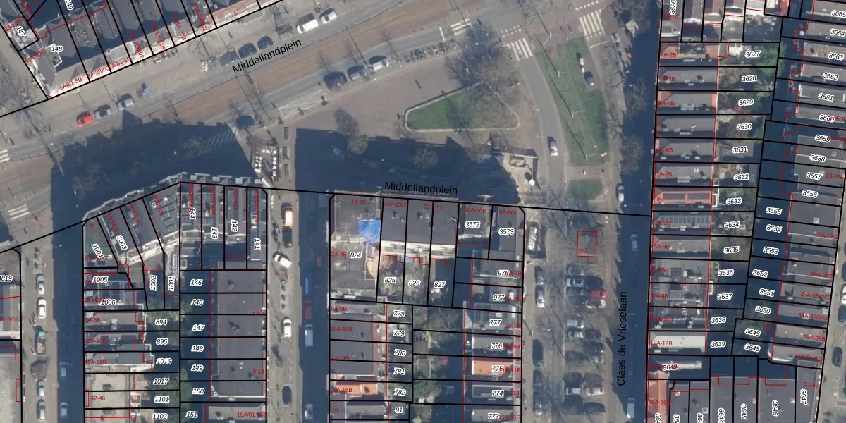 Middellandplein 12-D is gelegen op kadastraal perceel DHV00C826. Deze kadastrale aanduiding is uniek en wordt gebruikt door het Kadaster om eigendomsrechten en andere zakelijke rechten vast te leggen. Het perceel maakt onderdeel uit van de kadastrale gemeente Delfshaven.