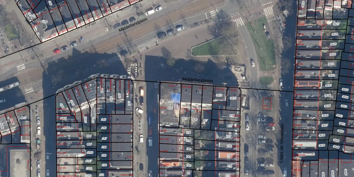 Middellandplein 14 is gelegen op kadastraal perceel DHV00C824. Deze kadastrale aanduiding is uniek en wordt gebruikt door het Kadaster om eigendomsrechten en andere zakelijke rechten vast te leggen. Het perceel maakt onderdeel uit van de kadastrale gemeente Delfshaven.