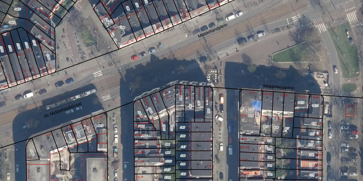 Middellandplein 19-A is gelegen op kadastraal perceel DHV00C144. Deze kadastrale aanduiding is uniek en wordt gebruikt door het Kadaster om eigendomsrechten en andere zakelijke rechten vast te leggen. Het perceel maakt onderdeel uit van de kadastrale gemeente Delfshaven.