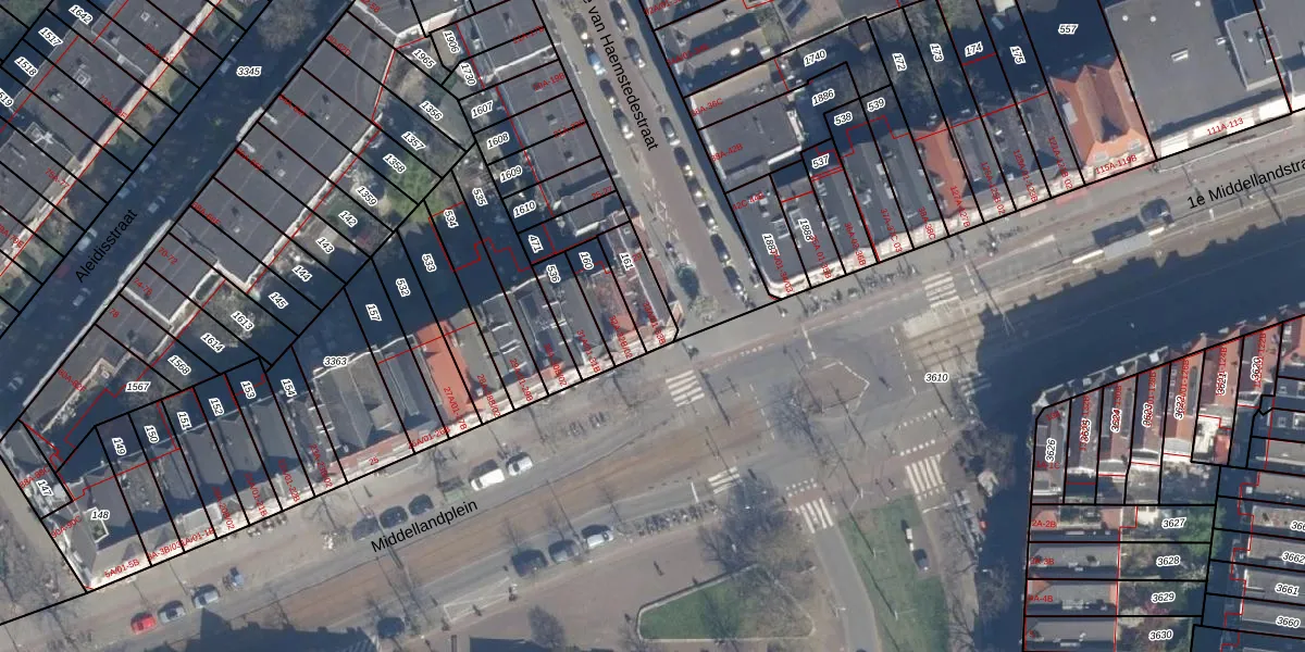 Middellandplein 33-B is gelegen op kadastraal perceel DHV00I161. Deze kadastrale aanduiding is uniek en wordt gebruikt door het Kadaster om eigendomsrechten en andere zakelijke rechten vast te leggen. Het perceel maakt onderdeel uit van de kadastrale gemeente Delfshaven.
