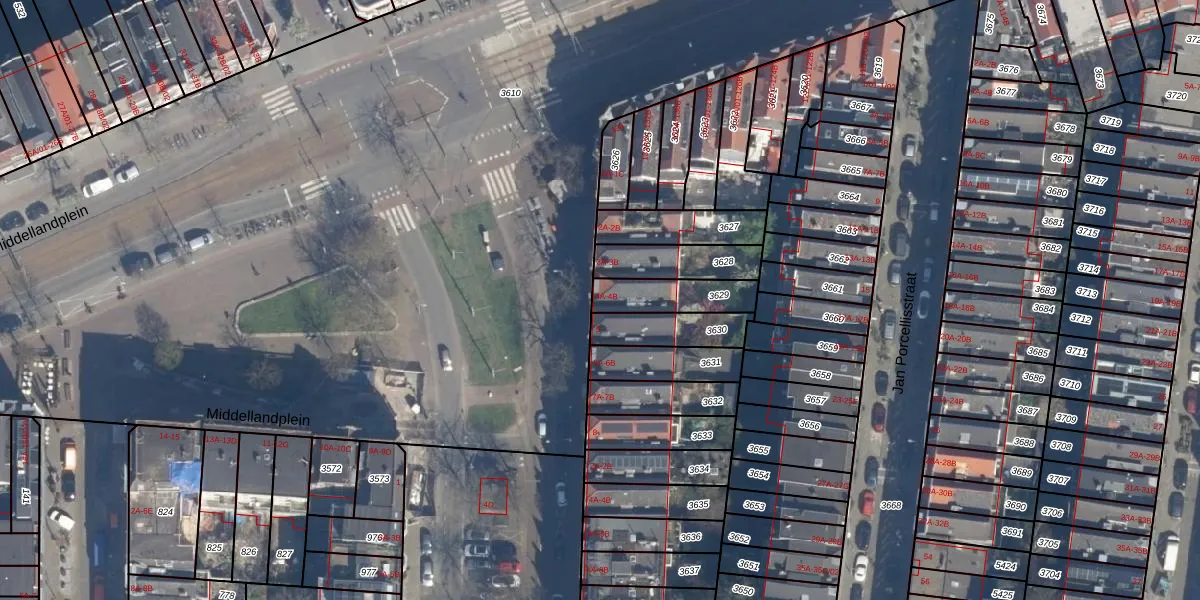 Middellandplein 4-A is gelegen op kadastraal perceel DHV00C3629. Deze kadastrale aanduiding is uniek en wordt gebruikt door het Kadaster om eigendomsrechten en andere zakelijke rechten vast te leggen. Het perceel maakt onderdeel uit van de kadastrale gemeente Delfshaven.