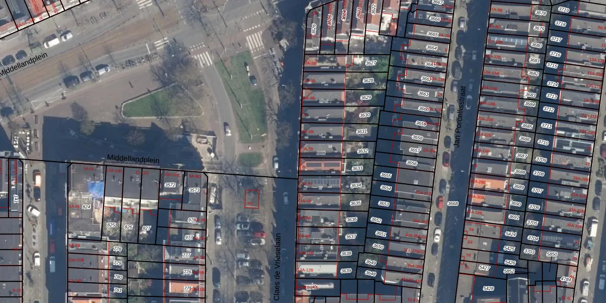 Middellandplein 7-B is gelegen op kadastraal perceel DHV00C3632. Deze kadastrale aanduiding is uniek en wordt gebruikt door het Kadaster om eigendomsrechten en andere zakelijke rechten vast te leggen. Het perceel maakt onderdeel uit van de kadastrale gemeente Delfshaven.
