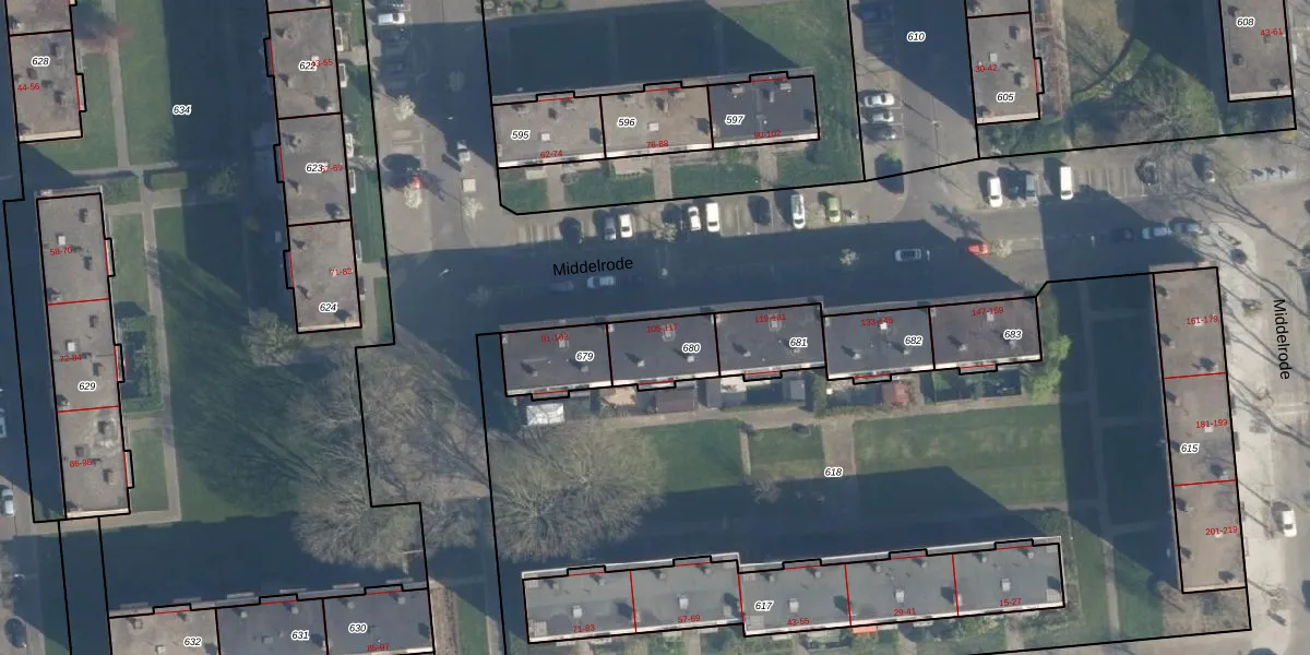Middelrode 113 is gelegen op kadastraal perceel CLS00K680. Deze kadastrale aanduiding is uniek en wordt gebruikt door het Kadaster om eigendomsrechten en andere zakelijke rechten vast te leggen. Het perceel maakt onderdeel uit van de kadastrale gemeente Charlois.