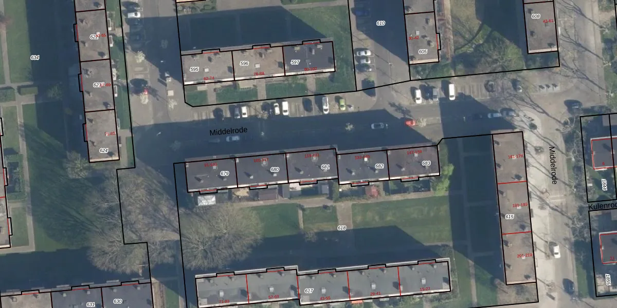 Middelrode 125 is gelegen op kadastraal perceel CLS00K681. Deze kadastrale aanduiding is uniek en wordt gebruikt door het Kadaster om eigendomsrechten en andere zakelijke rechten vast te leggen. Het perceel maakt onderdeel uit van de kadastrale gemeente Charlois.