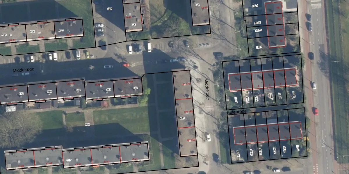 Middelrode 171 is gelegen op kadastraal perceel CLS00K615. Deze kadastrale aanduiding is uniek en wordt gebruikt door het Kadaster om eigendomsrechten en andere zakelijke rechten vast te leggen. Het perceel maakt onderdeel uit van de kadastrale gemeente Charlois.