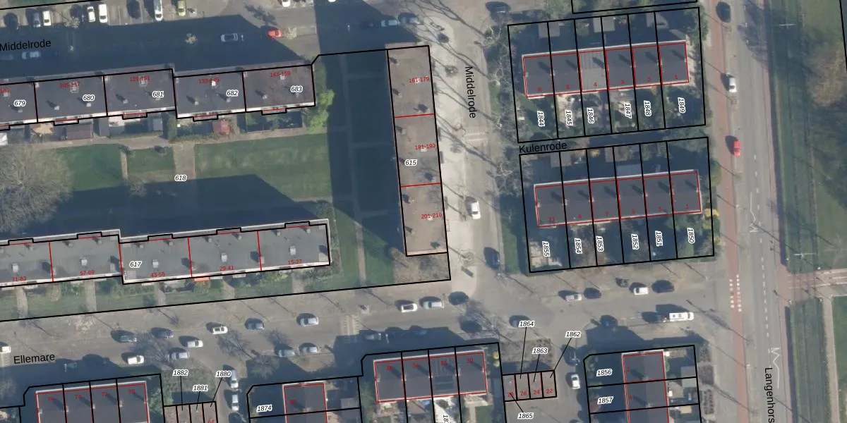 Middelrode 203 is gelegen op kadastraal perceel CLS00K615. Deze kadastrale aanduiding is uniek en wordt gebruikt door het Kadaster om eigendomsrechten en andere zakelijke rechten vast te leggen. Het perceel maakt onderdeel uit van de kadastrale gemeente Charlois.