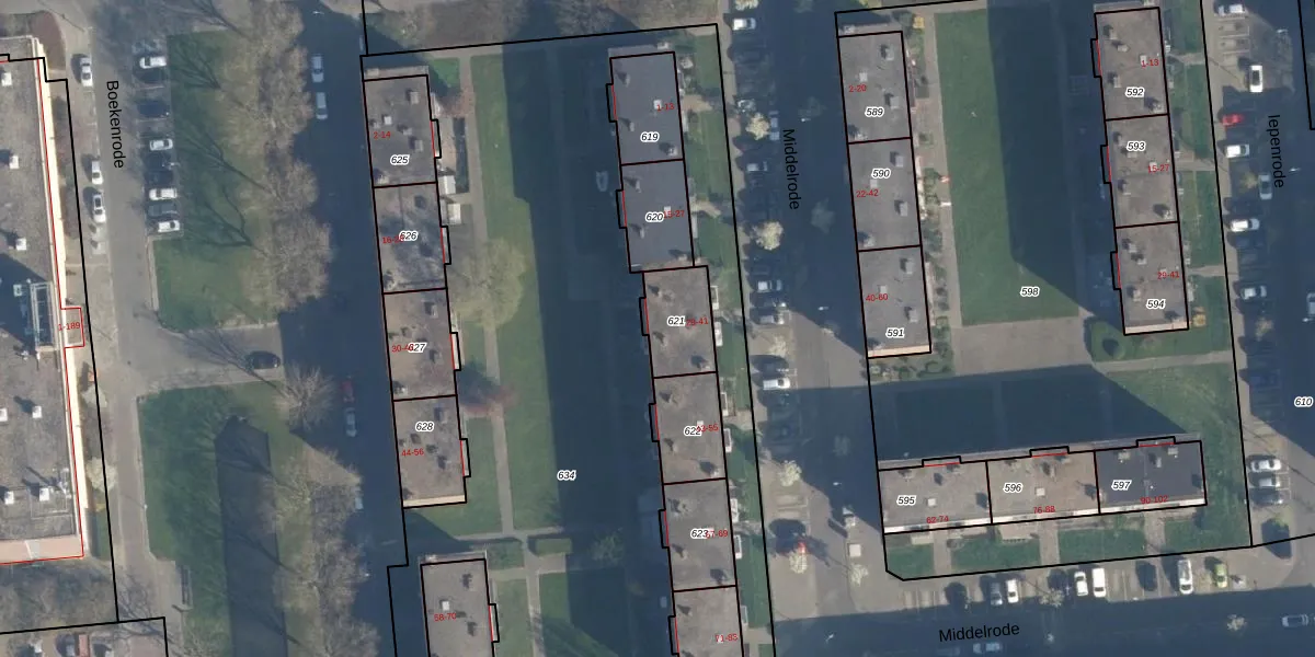 Middelrode 37 is gelegen op kadastraal perceel CLS00K621. Deze kadastrale aanduiding is uniek en wordt gebruikt door het Kadaster om eigendomsrechten en andere zakelijke rechten vast te leggen. Het perceel maakt onderdeel uit van de kadastrale gemeente Charlois.