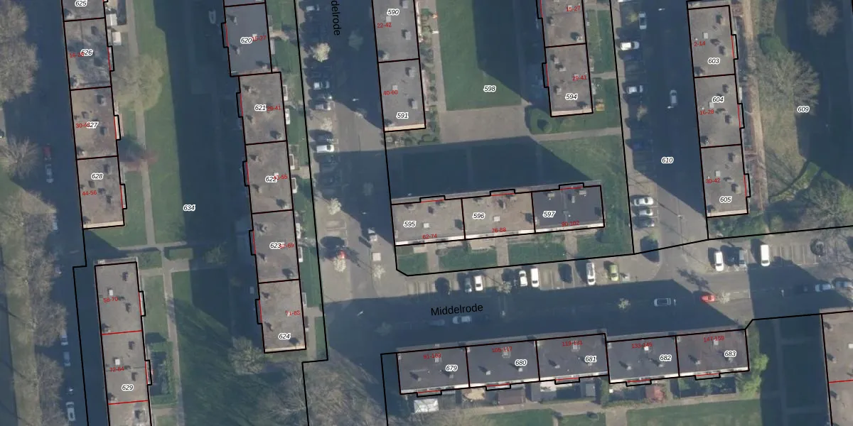 Middelrode 74 is gelegen op kadastraal perceel CLS00K595. Deze kadastrale aanduiding is uniek en wordt gebruikt door het Kadaster om eigendomsrechten en andere zakelijke rechten vast te leggen. Het perceel maakt onderdeel uit van de kadastrale gemeente Charlois.
