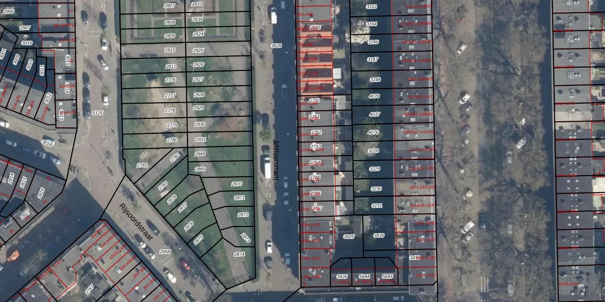 Millinxstraat 112-A-02 is gelegen op kadastraal perceel CLS00G2753. Deze kadastrale aanduiding is uniek en wordt gebruikt door het Kadaster om eigendomsrechten en andere zakelijke rechten vast te leggen. Het perceel maakt onderdeel uit van de kadastrale gemeente Charlois.