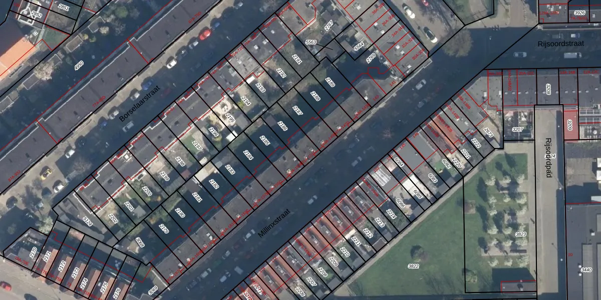 Millinxstraat 151-A is gelegen op kadastraal perceel CLS00G2186. Deze kadastrale aanduiding is uniek en wordt gebruikt door het Kadaster om eigendomsrechten en andere zakelijke rechten vast te leggen. Het perceel maakt onderdeel uit van de kadastrale gemeente Charlois.
