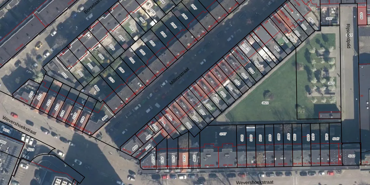 Gebruik de zoekbalk of klik op een perceel voor informatie over de adressen binnen dit perceel.