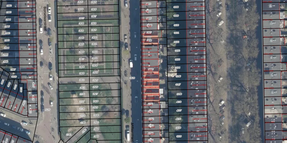 Millinxstraat 96-A-01 is gelegen op kadastraal perceel CLS00G2695. Deze kadastrale aanduiding is uniek en wordt gebruikt door het Kadaster om eigendomsrechten en andere zakelijke rechten vast te leggen. Het perceel maakt onderdeel uit van de kadastrale gemeente Charlois.