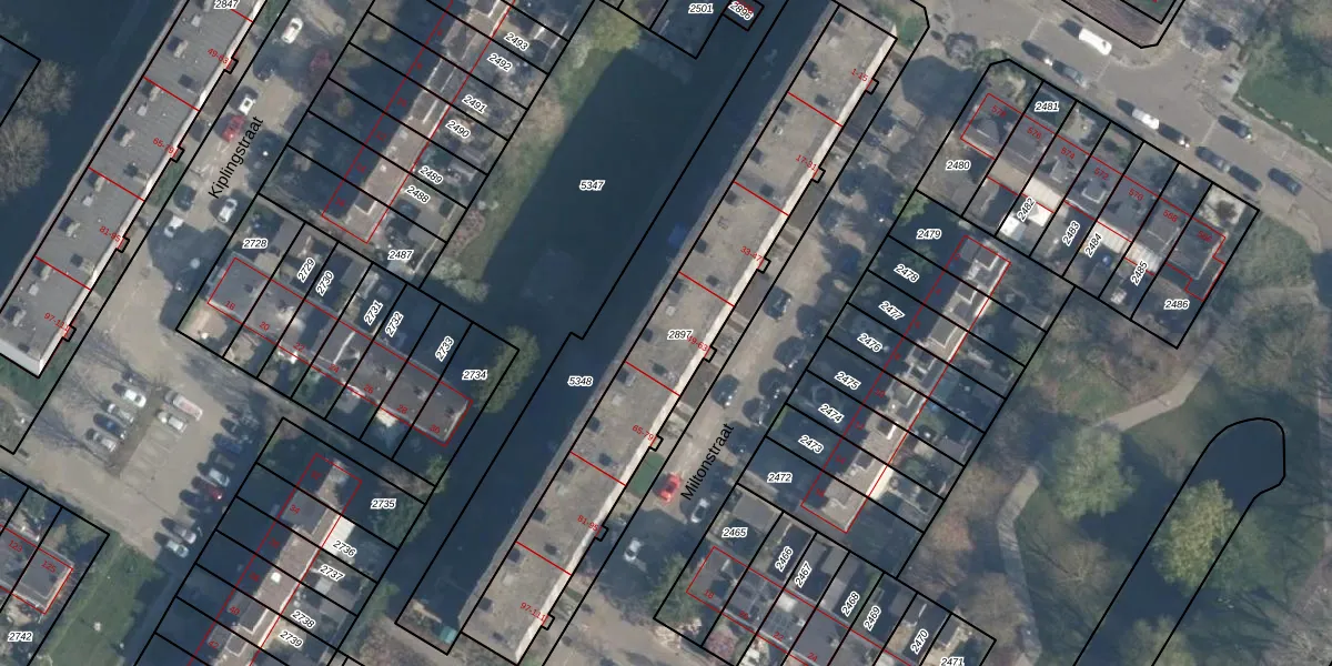 Het perceel waarop Miltonstraat 49 staat heeft een oppervlakte van 1113 m². Dit is een zeer groot perceel. De perceeloppervlakte wordt geregistreerd door het Kadaster. Gedetailleerde informatie over de maten van dit perceel kunt u vinden in het rapport Kadastrale kaart met maatvoering van Miltonstraat 49.