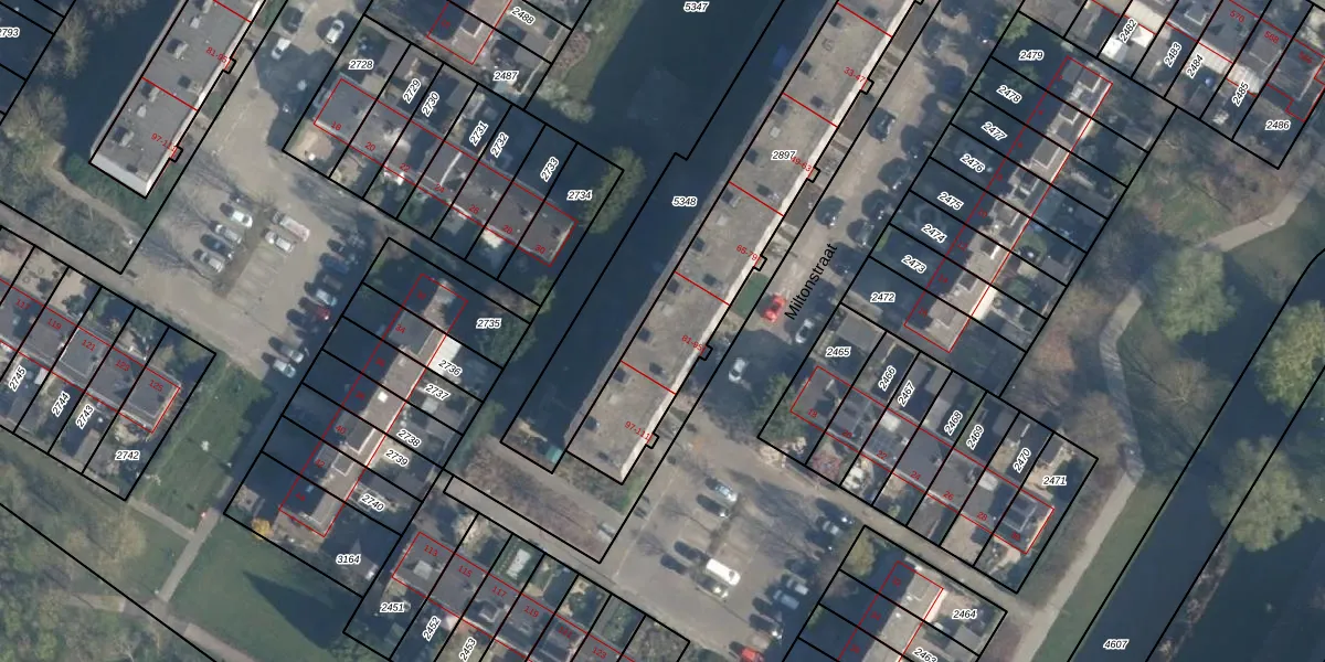 Het perceel waarop Miltonstraat 83 staat heeft een oppervlakte van 1113 m². Dit is een zeer groot perceel. De perceeloppervlakte wordt geregistreerd door het Kadaster. Gedetailleerde informatie over de maten van dit perceel kunt u vinden in het rapport Kadastrale kaart met maatvoering van Miltonstraat 83.