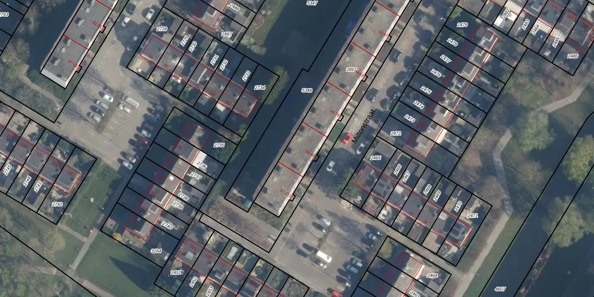 Miltonstraat 93 is gelegen op kadastraal perceel ISM01C2897. Deze kadastrale aanduiding is uniek en wordt gebruikt door het Kadaster om eigendomsrechten en andere zakelijke rechten vast te leggen. Het perceel maakt onderdeel uit van de kadastrale gemeente IJsselmonde.