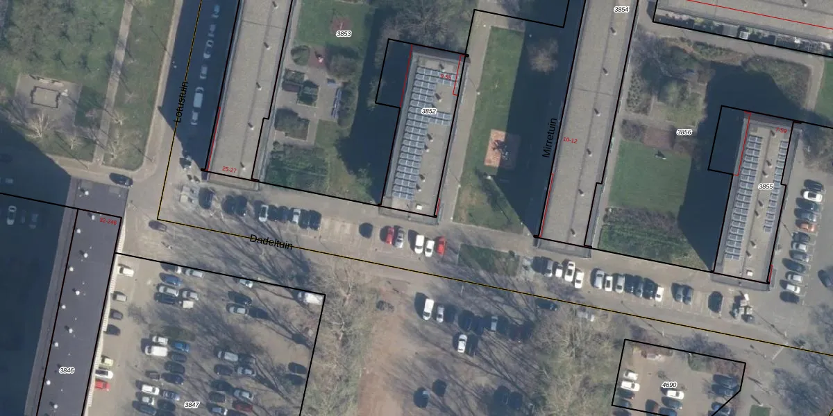 Het perceel waarop Mirretuin 55 staat heeft een oppervlakte van 615 m². Dit is een groot perceel. De perceeloppervlakte wordt geregistreerd door het Kadaster. Gedetailleerde informatie over de maten van dit perceel kunt u vinden in het rapport Kadastrale kaart met maatvoering van Mirretuin 55.